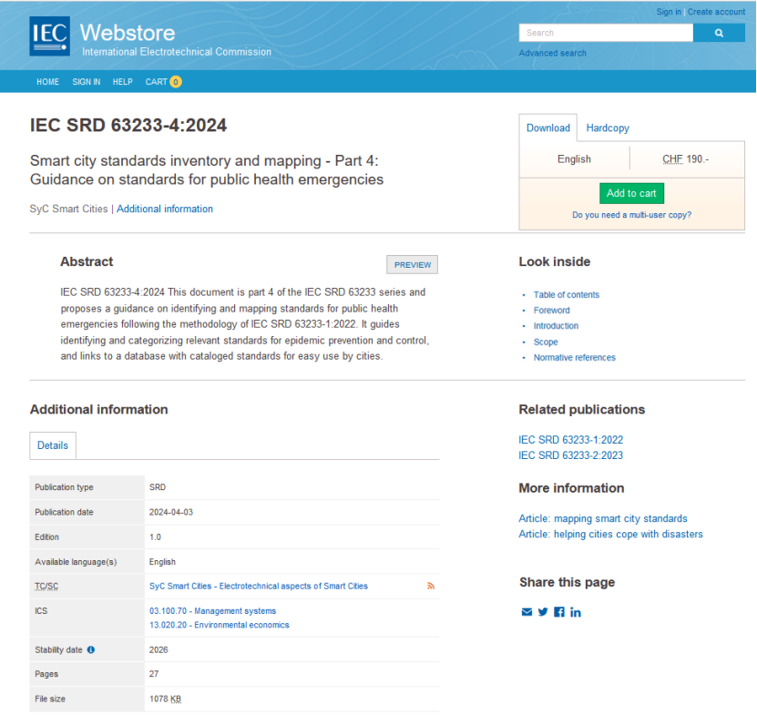 该标准是我院高永超博士作为项目牵头人提出并制定的《IEC SRD 63233智慧城市标准映射》系列标准的重要组成部分,为突发公共卫生事件相关标准的识别和映射提供了方法指导,同时,用户还可通过该标准中提供的链接访问到全面编目的标准信息库,方便城市用户快速查询和获取所需标准。
