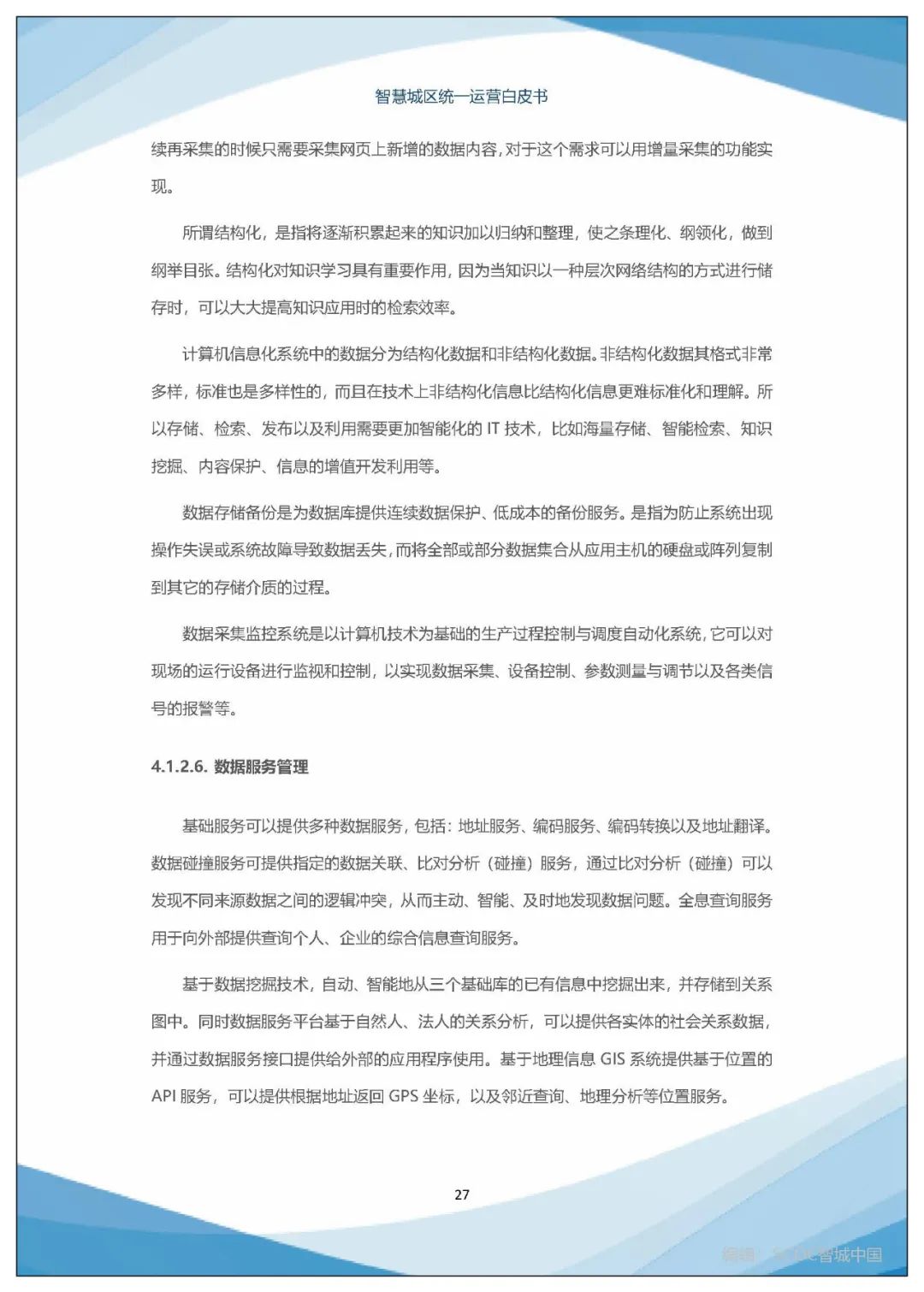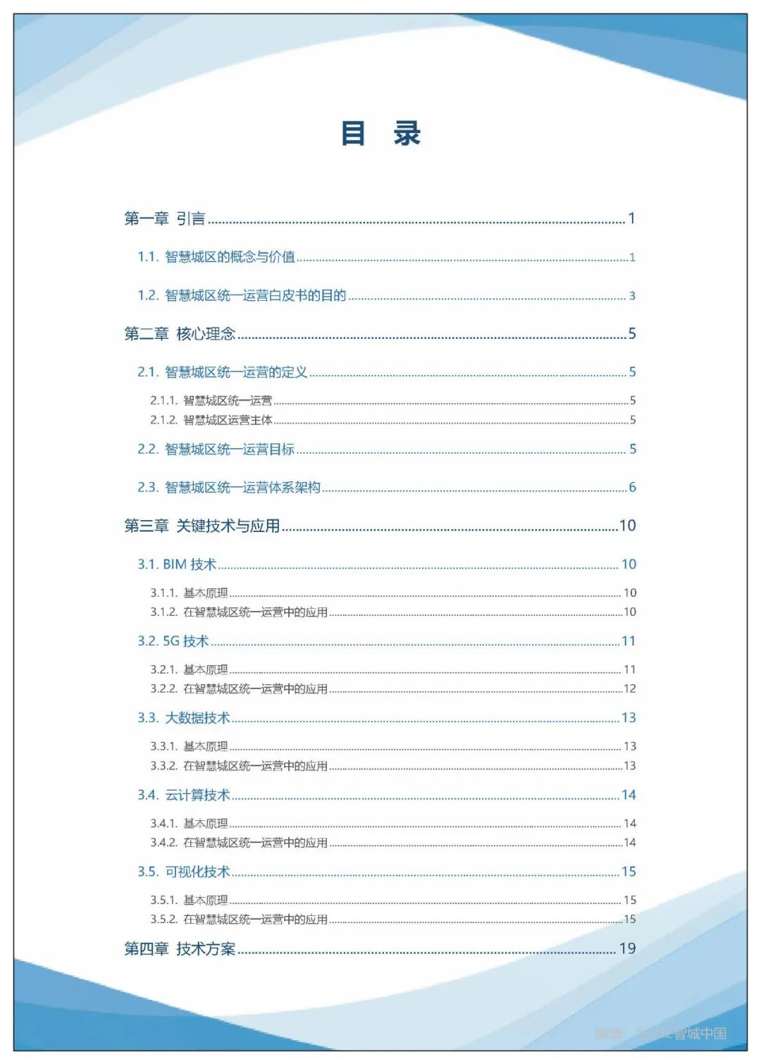 该白皮书将介绍智慧城区的概念、核心理念、关键技术,提出智慧城区统一运营的应用场景、运营方案、保障策略、各系统的建设要求及接入标准。