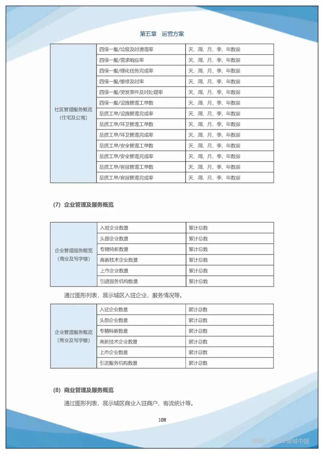 (1)运营监测中心:是采集城区各业态的业务数据及设备数据,为各部门管理工作提供数据支撑,实现项目数据运行状态一屏感知。