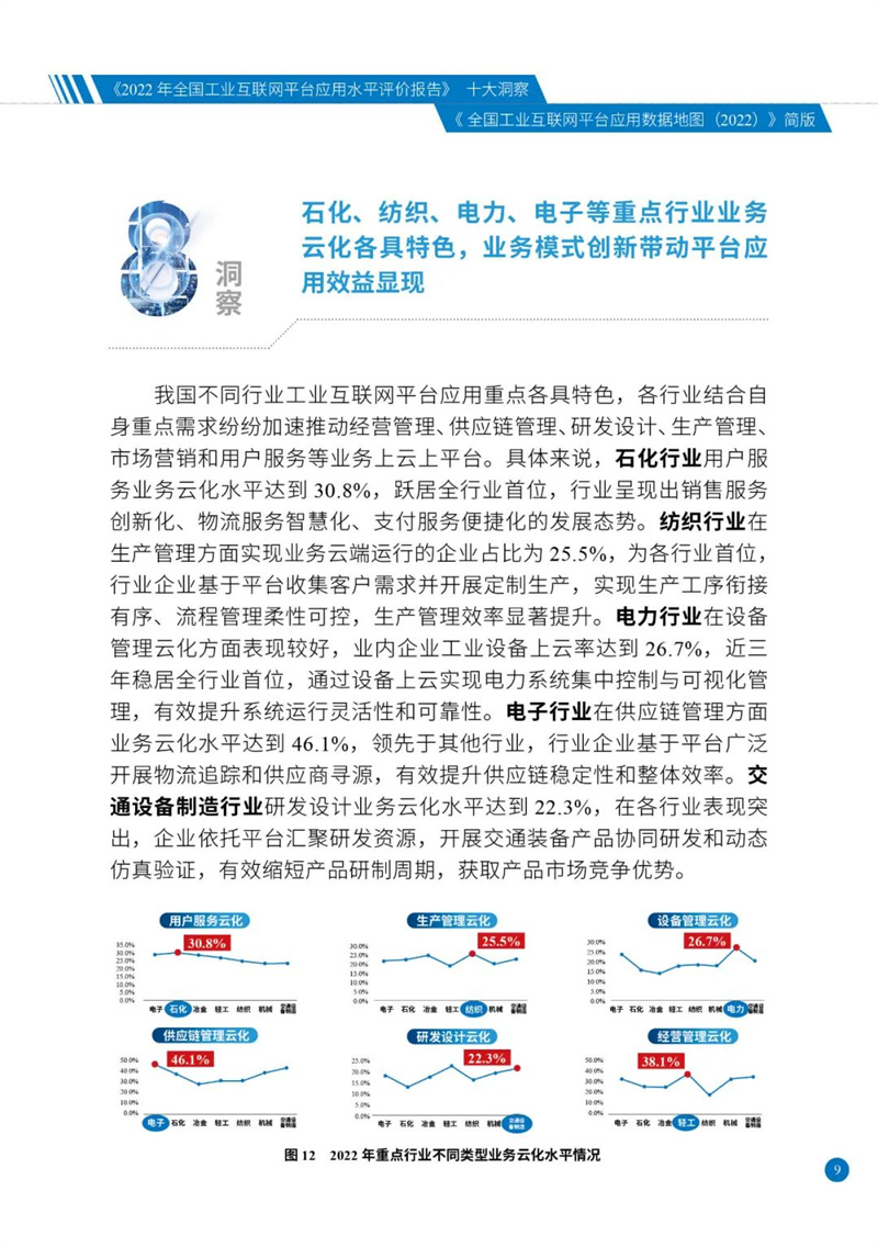 以下为《2022年全国工业互联网平台应用水平评价报告》十大洞察解读: